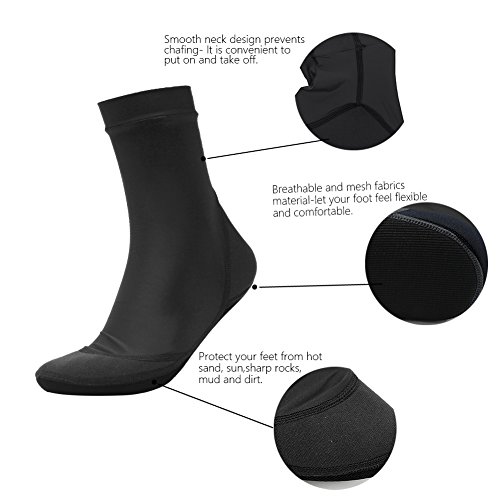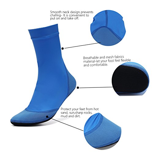 -. Feature : BEST PROTECTION -- Protect your feet from hot sand, sun,sharp rocks,mud and dirt. / SIZE TIP-- S /Kids 2.5M-4.5M/ W 5-5.5, M/Kids 5-6.5/ W 6.5-7, L/W 8-8.5/M 6.5-8, XL/W 10-11/M 8.5-9.5 / CONVENIENCE -- Smooth neck design prevents chafing when wearing our water shoes. It is convenient to put on and take off. / COMFORTABLE & FIT -- Breathable and mesh fabrics material provids for breathability and quick drying ,let your foot feel flexible and comfortable. / OCCASION -- Socks for Beach, Lake, Swimming,Cycling, Fishing, Garden, Pool,Boating,Sailing,Walking,Beach,Swimming,Boating,Sailing,Lawn, Park, and driving,Playing Volleyball and Soccer .