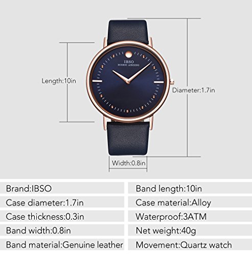 PRODUCT DESCRIPTION:This watch is constructed with soft Genuine Leather Belt and A ultra-thin watch case,there is Quartz movement inside.Simple two pointer and scale Design,Shiny metallic luster and blue dial,combines quality, leading edge fashion, and value.It's the best gift for yourself and others.
