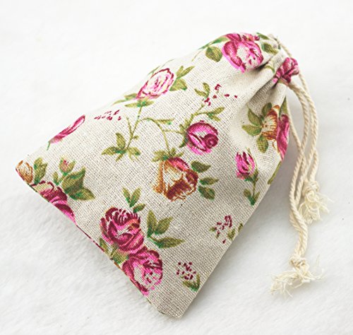 AEAOA 10pcs Cotton Muslin Wedding Party Favor Bags 4x6 inch Wedding Bridal Shower Bachelorette Party Favor Gifts (Big Rose)