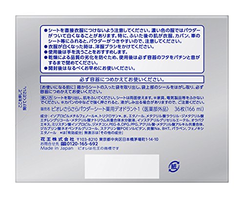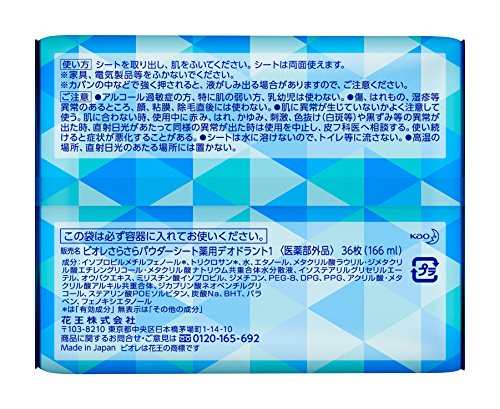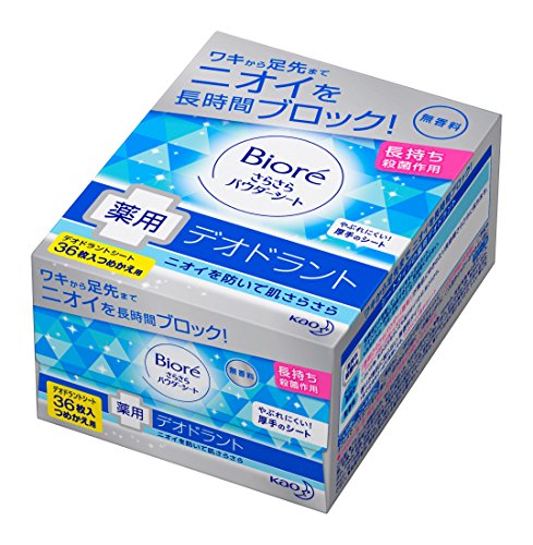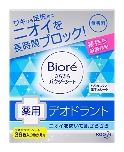 원본상품명: ビオレさらさらパウダ?シ?ト デオドラント 無香料 詰替 36枚