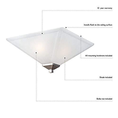 This Design House 2-light ceiling light is made of formed steel, alabaster glass and finished in oil rubbed bronze. This 2-light ceiling mount is rated for 120-volts and uses (2) 60-watt medium base incandescent bulbs. As one of the most popular styles of light fixtures, ceiling mounts are suited for any room in the house as they hang close to the ceiling with a classic half-moon shape. Measuring 4.5-Inches (h) by 11.4-Inches (W), this 7.8-Pound fixture's clean lines and sleek details add a modern accent in a kitchen, dining room or entry way. This product is UL and cul listed. The millbridge Collection features a beautiful matching pendant, chandelier, ceiling mount and vanity light. This Design House ceiling light comes with a 1-year limited warranty that protects against defects in materials and workmanship. Design House offers products in multiple home decor categories including lighting, ceiling fans, hardware and Plumbing products. With years of hands-on experience, Design House understands every aspect of the home decor industry, and devotes itself to providing quality products across the home decor spectrum. Providing value to their customers, Design House uses industry leading merchandising solutions and innovative programs. Design House is committed to providing high quality products for your home improvement projects.Feature