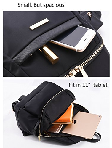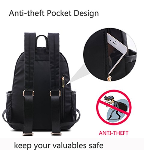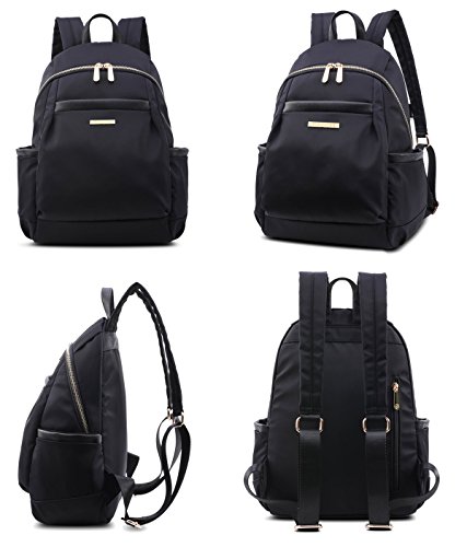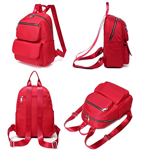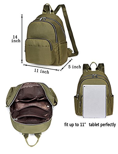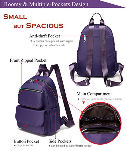 Product Description Approximate Dimensions of the backpack: 14" H X 11" W X 5" D. This lightweight backpack with lots of pockets is perfect for girls or ladies' daily use. This day pack has serveral different size compartments and pockets: one main compartment, one button pocket,one front zipped pocket and a hidden zipped back-pocket. These provide roomy space for storage. Most of your daily necessities can be loaded, such as laptop,folder,water bottle,notebook,lunch box,extra clothes,etc. There are 2 side pockets used as water bottle holder. These different compartments and pockets will help to keep your daily stuff organized. The high quality zippers can keep daily gear safe.On the back, the anti-theft back-pocket is nicely designed to keep your valuables safe.The adjustable shoulder straps are comfortable and convenient to carry. On the top,there is a handle on the top and a strap to hang up the bag when needed. Notice: Due to monitor variations,colors may appear slightly different. Washing instructions: - Washing with clean water with ordinary temperatures. - DO NOT washing with hot water. - Hang to dry. - Washing separately to avoid staining.