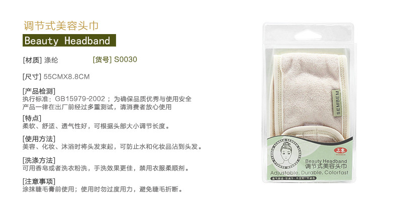 调节式美容头巾束发带包头巾用于运动沐浴洗脸做面膜