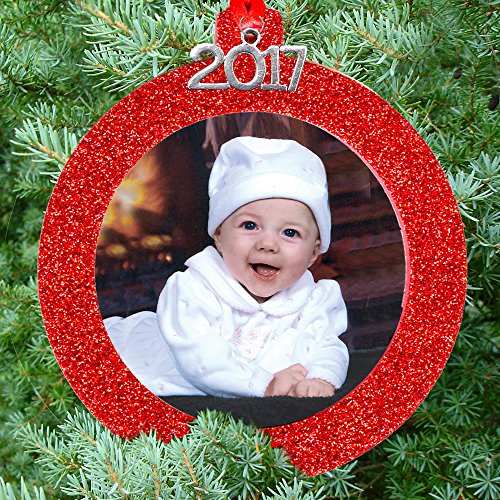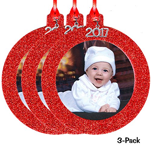 3-Pack includes three 2017 photo ornaments, each with a 2017 charm, a Crystal Clear photo protector and a matching satin ribbon for hanging.