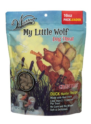 -. Binding : Misc. -. Brand : Waggers -. EAN : 0855729001698 -. Feature : Soft & moist dog treats ideal for small rewarding / Grain free and less than 2.7 calories per treat for rewarding with less guilt / Over 40% fresh protein for guaranteed great taste -. Label : Waggers -. Manufacturer : Waggers -. Model : My Little Wolf Duck 16 OZ -. MPN : My Little Wolf Duck 16 OZ -. PackageQuantity : 1 -. PartNumber : My Little Wolf Duck 16 OZ -. ProductGroup : Pet Products -. ProductTypeName : PET_SUPPLIES -. Publisher : Waggers -. Size : Small -. Studio : Waggers -. Title : Waggers Soft and Moist Grain Free Duck Recipe Dog Treats, 16-Ounce -. UPC : 855729001698