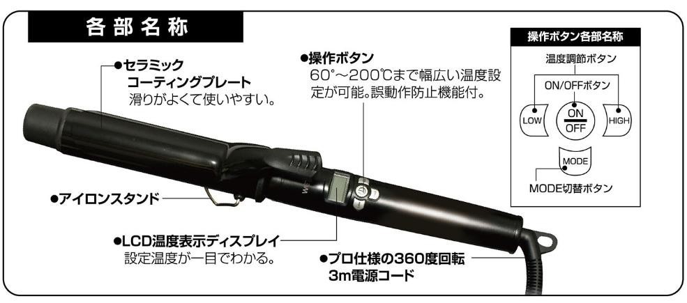 セラミックは熱が加わる事で、遠赤外線を放出します。遠赤外線は髪のキューティクルを保護したまま素早くクセをつけることができます。温度設定が60度~200度まで自由自在でいろんな髪質の方にご使用OK♪ |