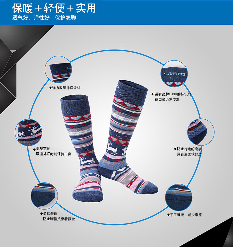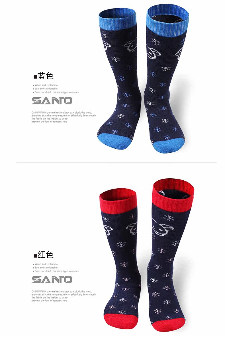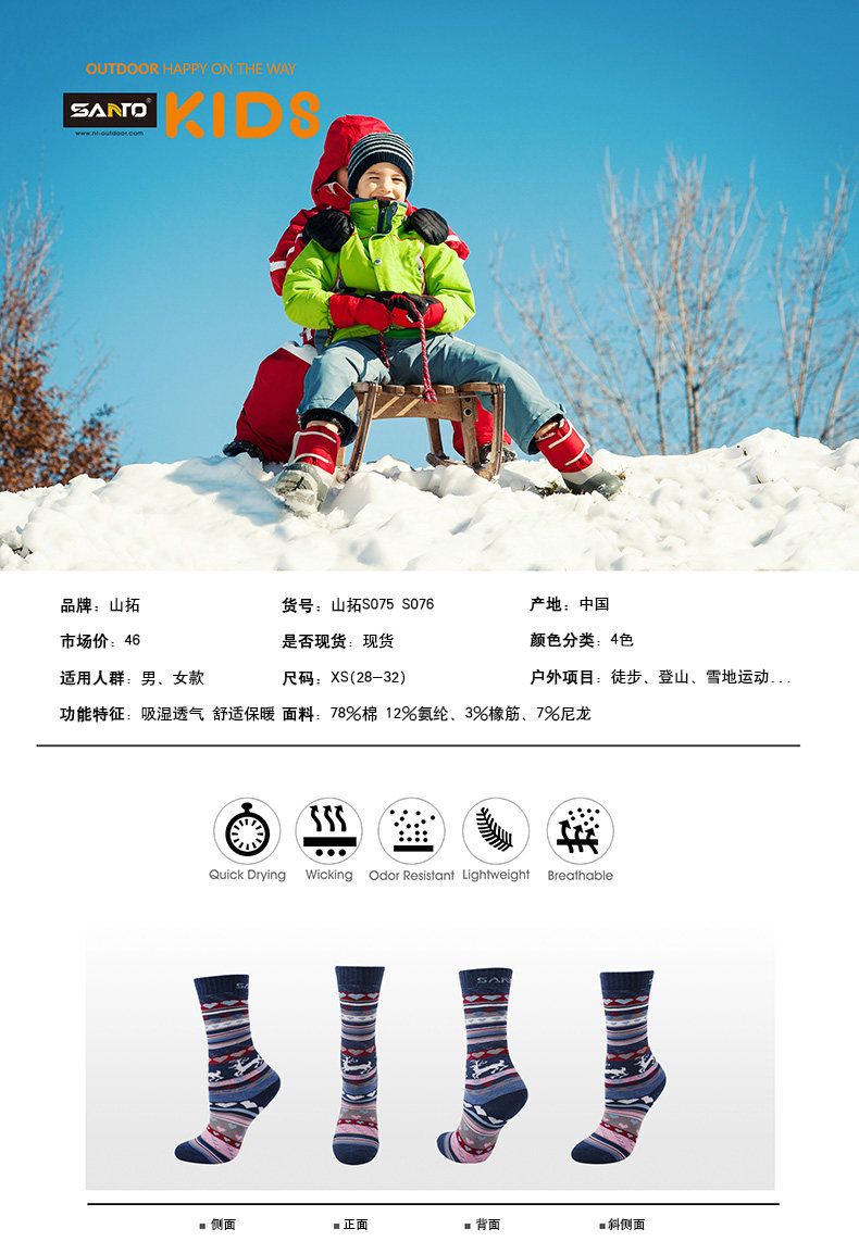 山拓运动袜户外男女儿童冬季保暖高帮袜滑雪袜子加厚跑步吸汗速干
