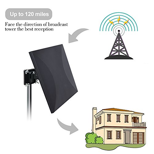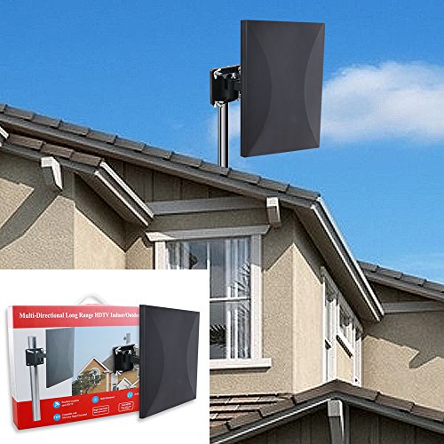 Features: 1. Innovative desigh, multi-directional receive signal, multi-angle adjustment. 2. Multiple options of installation place. Indoor, outdoor, walls, balcony, roof. (Recommend to install on your roof to get the best reception.) 3.Weatherproof and waterproof, lightning protection. 4. Simply and quick installation and commissioning, installation - connection - scanning. 5. Free HD TV shows and news from your local broadcasting tower!