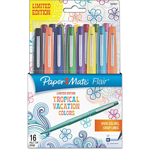 -. Title : Paper Mate 1928607 Point Guard Flair Bullet Point Stick Pen Tropical Inks 0.7mm 16/Pack