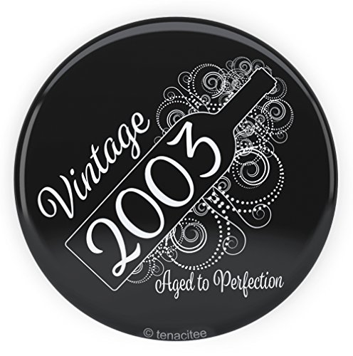 Binding : Apparel Product Description Born in 2003 - Aged Like a Fine Wine 2.25" Button by Tenacitee. Express yourself! Buttons are the perfect way to let the world know how you feel. Our buttons are designed, printed, and handmade at Tenacitee's studio in Oklahoma. Proudly made here in the USA! This 2.25" button has a metal shell with pinback and mylar cover to protect from scratches. Perfect to decorate your shirt, jacket, bag, or put anywhere else you want! It's a great gift or giveaway for parties. 0