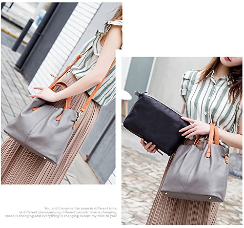 2 Piece including leather handbag and polyester clutch inside. Small bag but large capacity. No lining for leather handbag.