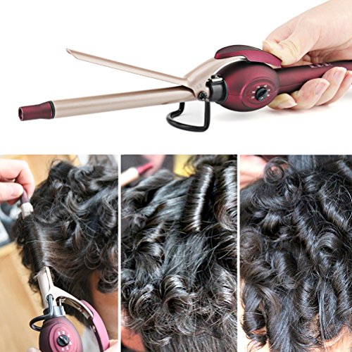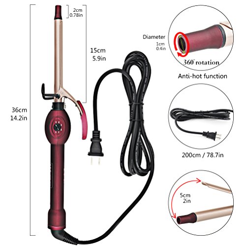 - Temp from 80℃ to 230℃ by rotating the button, 80℃-110 ℃ for fine or chemically processed hair, 140℃-170 ℃ for easy-to-curl or normal hair, 170℃-200℃ for thick or wavy hair, 200℃-230 ℃ for dense or hard-to-curl hair Professional curling iron auto shut off without use after 60 minutes, 360 degree rotatable swivel with 2.7m power cord