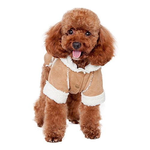 -. Feature : Material: Made of soft and warm fleece lining,faux suede fabric, keep your furry friend warme and protect her in cold weather . / Design Creative: Exquisite stitching, snap-on button closure, easily put on and take off. Fashion and lovely design to let your friend with stylish flair. / Features: durable, stylish, vintage, fine in detail, lightweight, wind-proof, cute hoodies / Easy on/ easy off with snaps. Machine wash and dry. Imported.