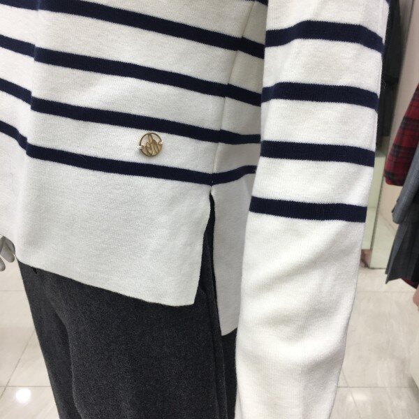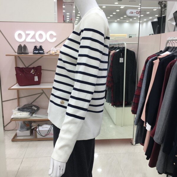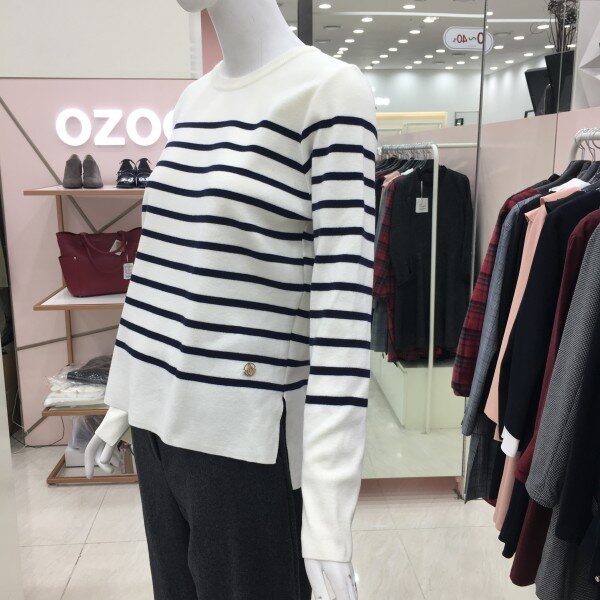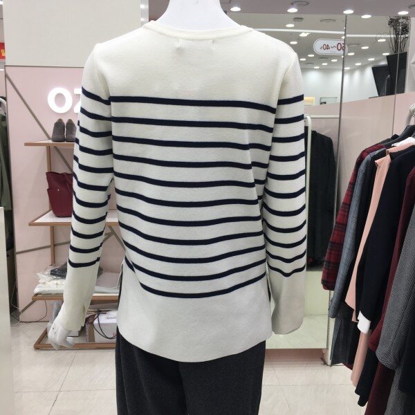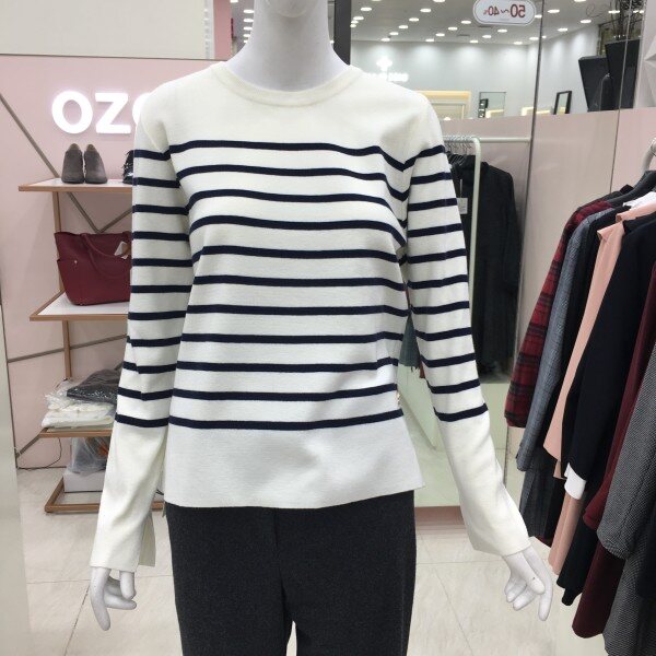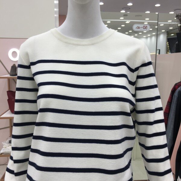 라운드넥 스트라이프 니트 소개해드려요.군더더기 없는 디자인으로 데일리 아이템으로 좋습니다.
