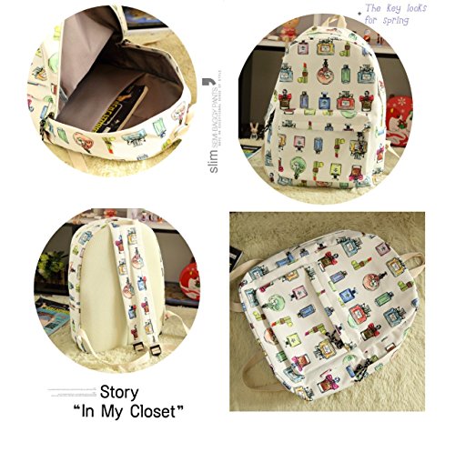-. Title : (フィノクレアーレ)fino creare リュックサック リュック 人気 高校生 中学生 学生 通学 女子 レディース かわいい おしゃれ パステルカラー キュートな 香水ボトル柄 レース キャンバス 002