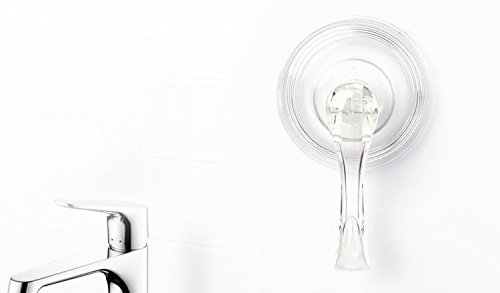 -. Feature : Material: Durable Plastic / Size: 5.8*5.0*9.0cm(2.3*2.0*3.5 in) / Single design. Securely and super strong suction power. bearing weight up to 2.6 pounds / Great for glass, laminate, mirror, ceramic tile, granite, acrylic and any non-porous surface with glossy finish. / Clear the wall, insure the surface is smooth and dry, and then Press the hook on the wall, clockwise turning to lock it, it will stick to the wall firmly.