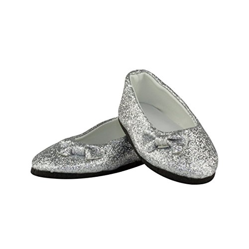 -. Title : Silver Glitter Dress Shoes - Silver Shimmer Shoes with a Bow, Fits 18 Inch American Girl Dolls, Doll Accessories