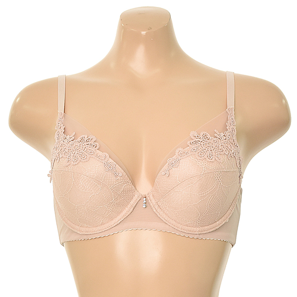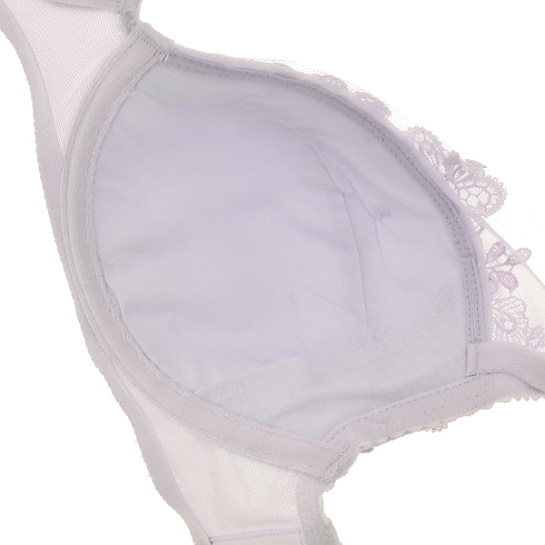 컵 상단에 들어간 레이스와 망이 가슴을 더 덮어주어 안정감 있는 착용감을 선사합니다.