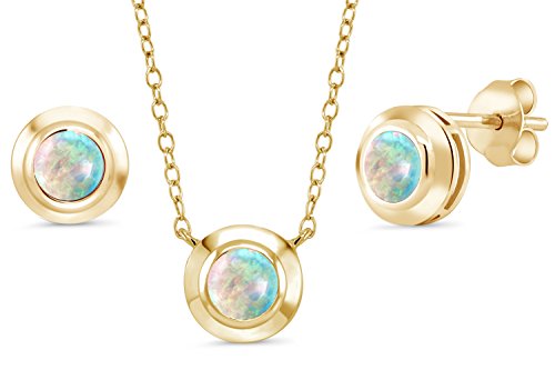 -. Binding : Jewelry -. Brand : Gem Stone King -. Color : White -. Department : womens -. Feature : SIMPLY SOPHISTICATED - This delicate pendant will immediately put you in the spot light. Crafted with high quality stones this pendant is the perfect accessory for any ensemble on any occasion. Our complimentary 18" Chain makes sure that this piece is stunning and all around flattering. / UNIQUELY DESIGNED- With simplicity in mind this pendant is the perfect item for gift givers who want to show they care. Perfect for birthdays, weddings, mother day or just those moments when you want to get something for that "Someone Special". / GORGEOUS- and Sparkly these unique earrings are perfect for any outfit! Pair them with date night and work week looks you cannot go wrong! Beautifully crafted these earrings are the perfect gift for any occasion and make perfect stocking stuffers for the holidays. They're truly a fashion staple and belong in every jewelry collection. / UNIQUE- The design of these earrings will ensure that you stand out effortlessly. Gift these beautiful earrings to yourself or someone you love. Made in the USA Gem Stone King products are always made with the highest quality elements and standards. / Gemstones may have been treated to improve their appearance or durability and may require special care. -. Model : VIV-0134-RCAB-OP-W-YPSS -. NumberOfItems : 1 -. PackageQuantity : 1 -. ProductGroup : Jewelry -. ProductTypeName : FINENECKLACEBRACELETANKLET -. Title : Cabochon White Simulated Opal 18K Yellow Gold Plated Silver Pendant Earrings Set