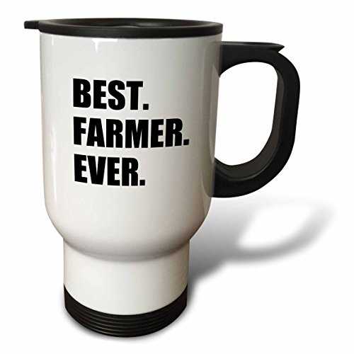 3dRose tm_184997_1 Best Farmer Ever Fun Gift for Farming Job Farm Black Text Travel Mug, 14-Ounce, Stainless Steel