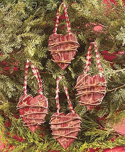 Sets of 4 Country Wood Hearts Ornaments
