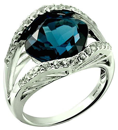-. Title : Sterling Silver 925 STATEMENT Ring GENUINE LONDON BLUE TOPAZ 7.62 Carats with RHODIUM-PLATED Finish