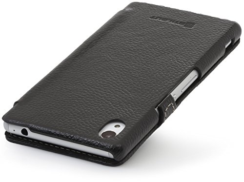 -. Title : StilGut® Book Type with Clip, Leather Case for Sony Xperia M4 Aqua, Black