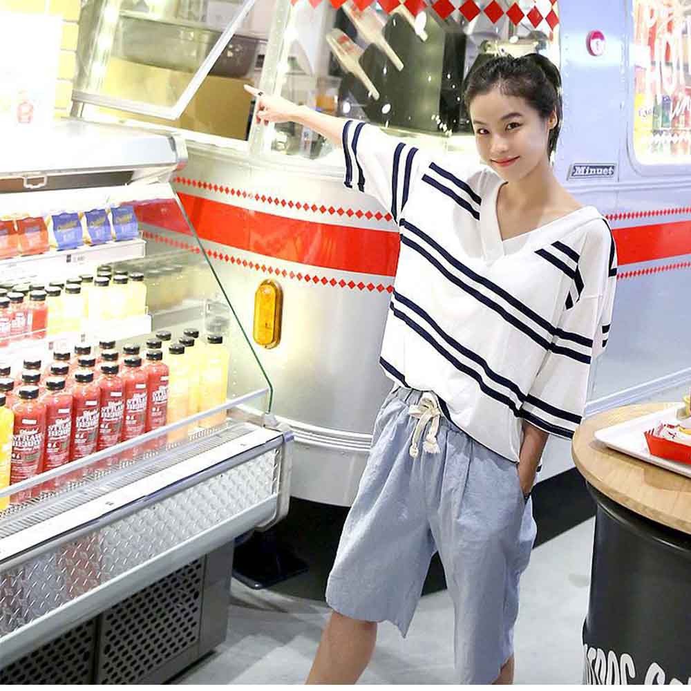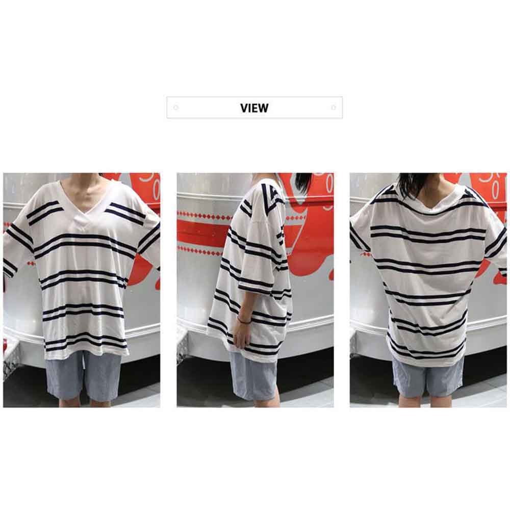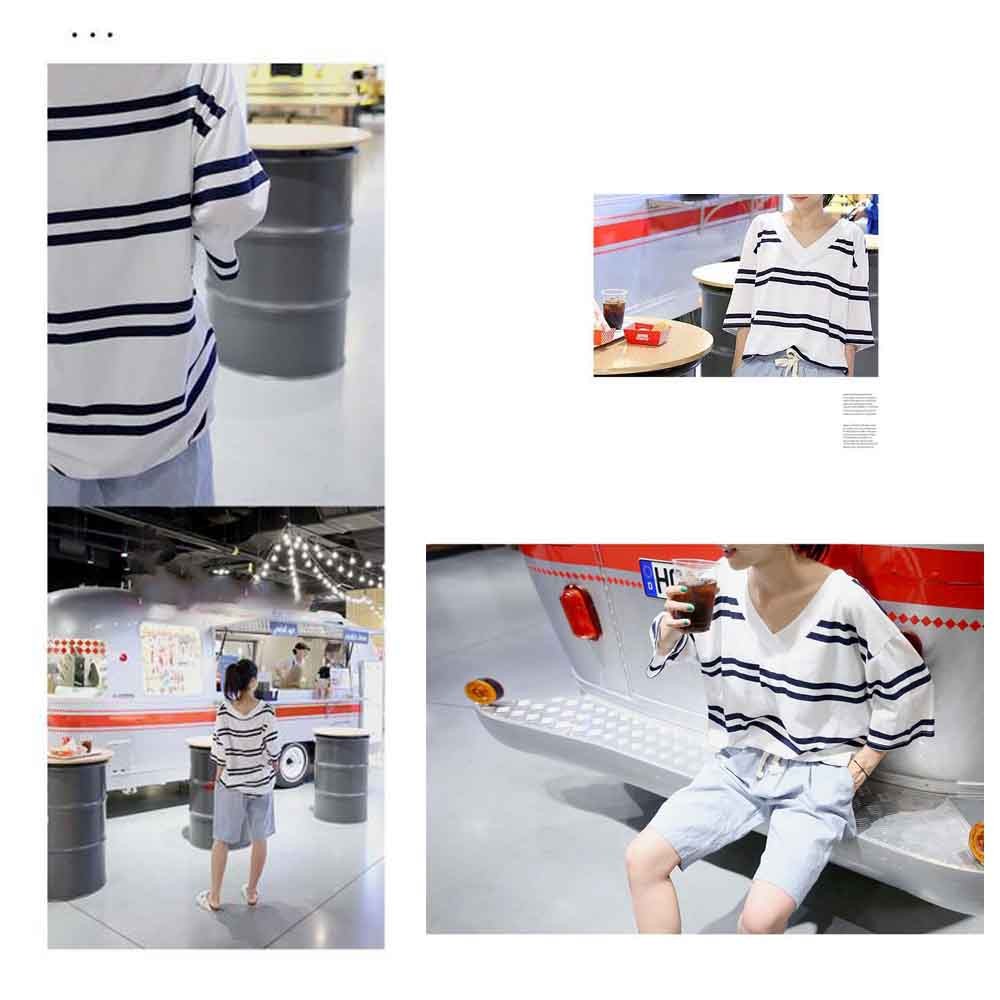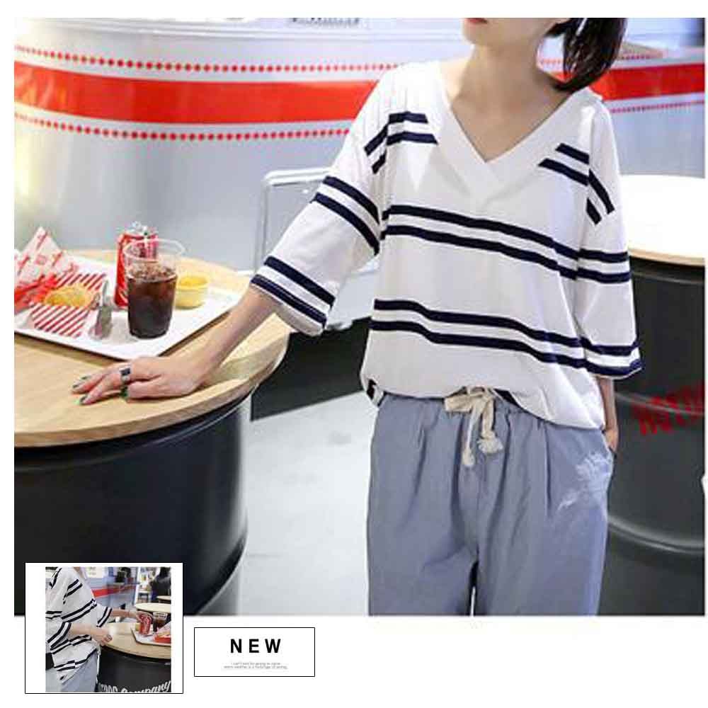 柔らかいコットン素材は動きやすく、襟元をvネックにして抜け感もあるため大人っぽい印象に。