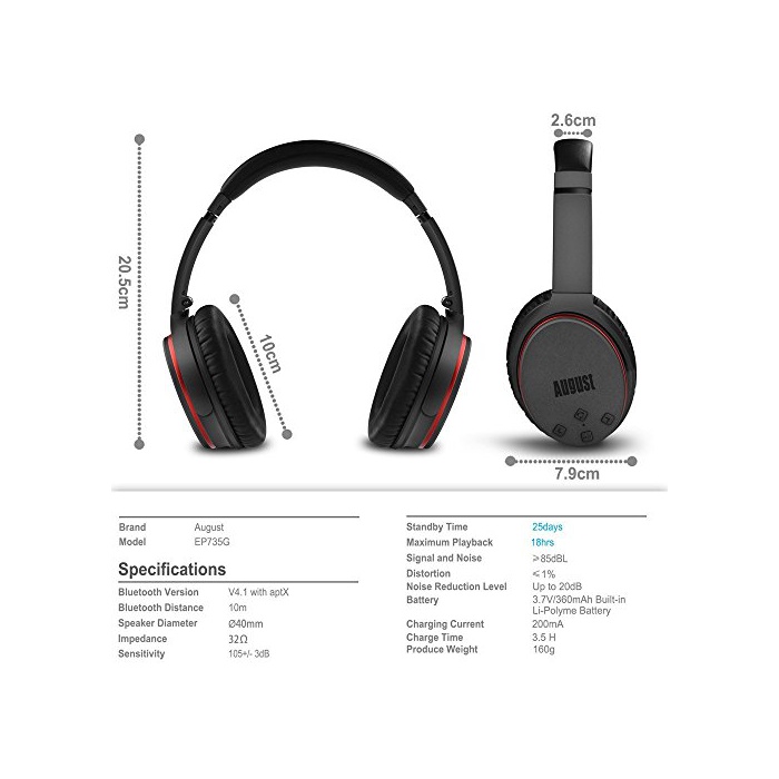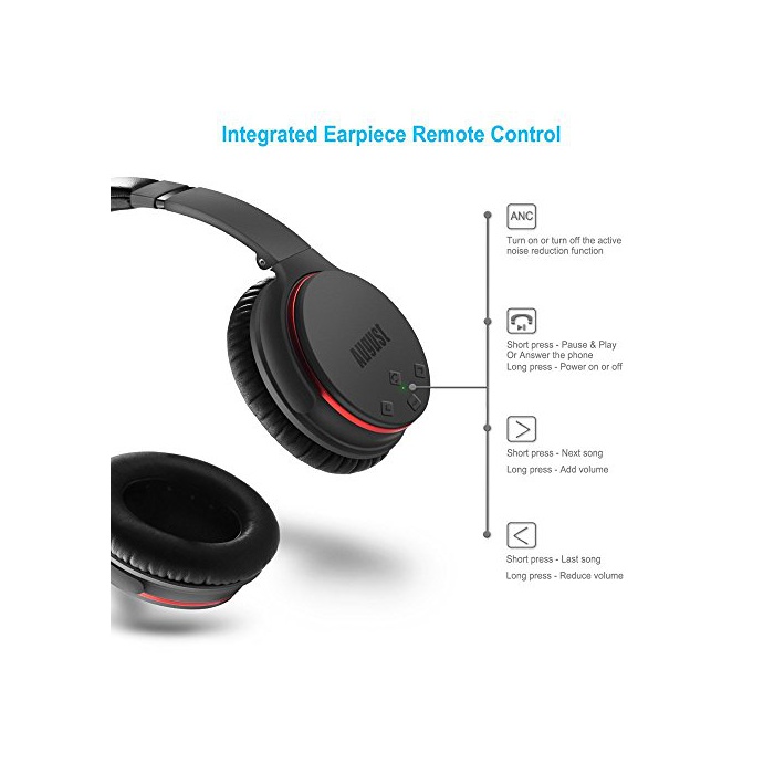 August 초경량 wireless 헤드폰 ANC 노이즈갼세린구헷도훈 aptX대응 지연 없음 마이크 부착 접이식식 EP735
