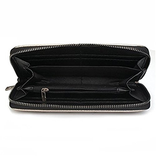 - Material: PU leather, zipper closure for your security. Light gold hardware rivets make the wallet special.