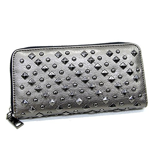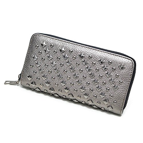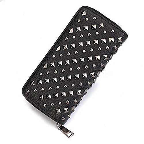Long Wallet, FOME PU Leather Cool fashion Women Punk Rivets Style Zipper Long Wallet Phone Bag Clutch Wallet Bag