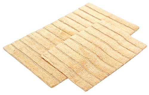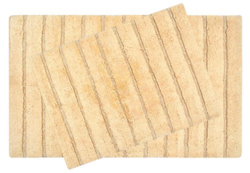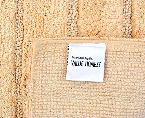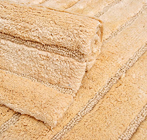 Value Homezz ( 2 Piece Bathmat Set ) Aisle design 100% Super Soft Cotton Tufted Accent Bath Rugs Size 21 x 34 / 17 x 24 Non Skid High Absorbency & Durable Machine washable Bath Mat (Butter)