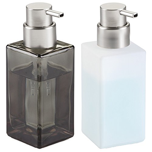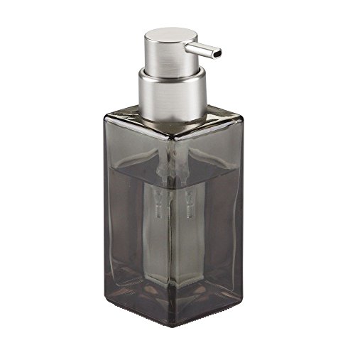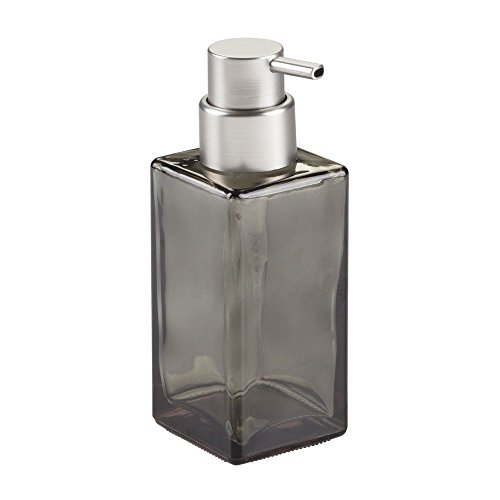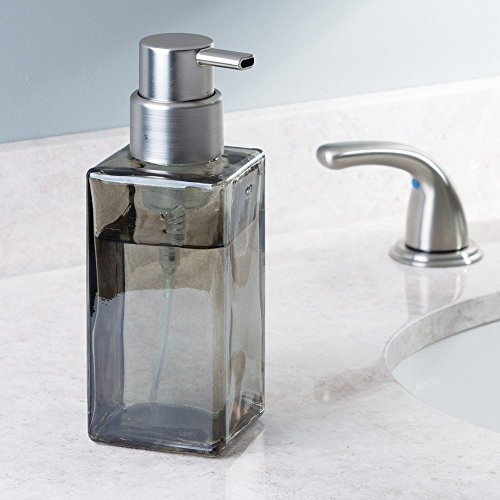 InterDesign Casilla Glass Foaming Soap Dispenser Pump for Kitchen, Bathroom Countertop and Vanities - Smoke/Brushed