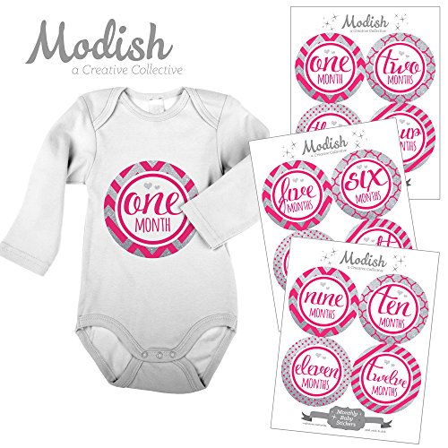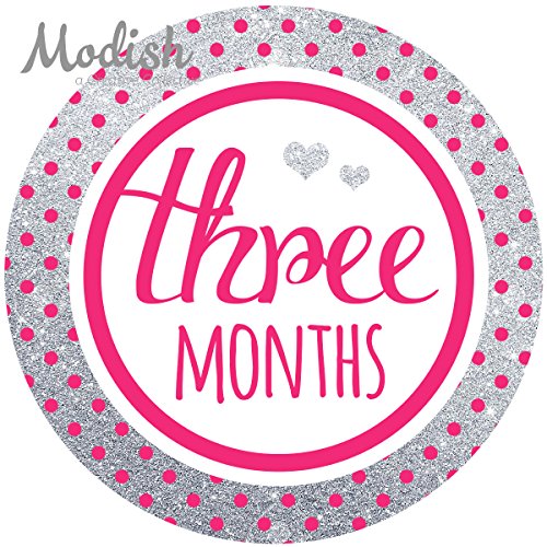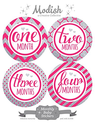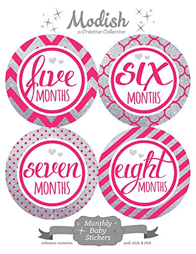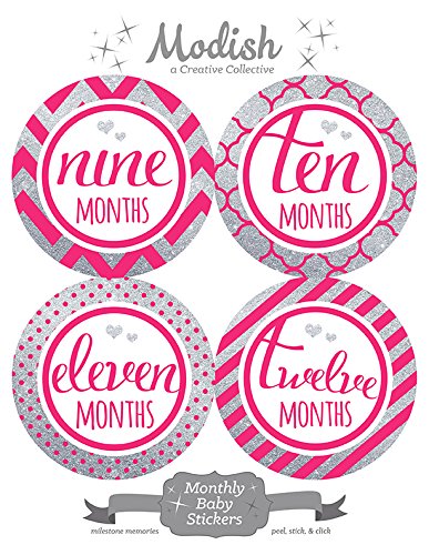 12 Monthly Baby Stickers, Silver Glitter Look {Faux Glitter} & Pink, Baby Girl, New Baby Gift, Baby Shower Gift, Baby Book Keepsake