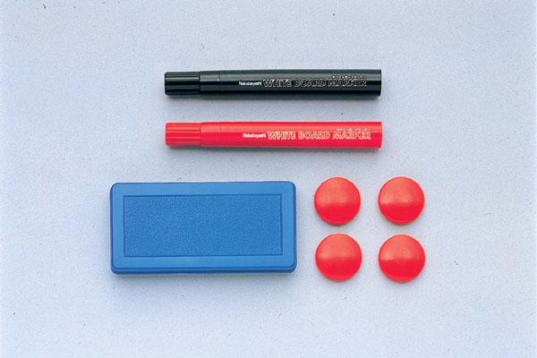 付属品マーカー(黒・赤各1本)、イレーザー(1個)、マグネット(4個)