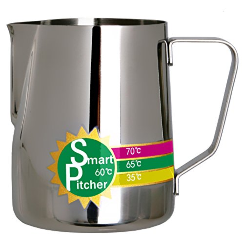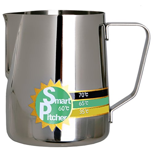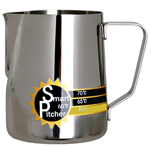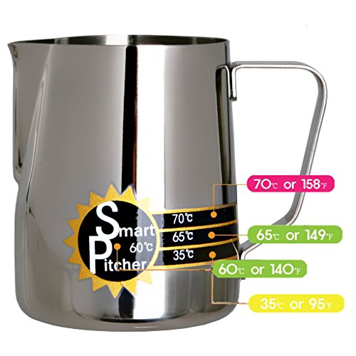 SMART PITCHER Espresso Coffee Milk Frothing Pitcher With Built-In Thermometer, Stainless Steel (20 oz)