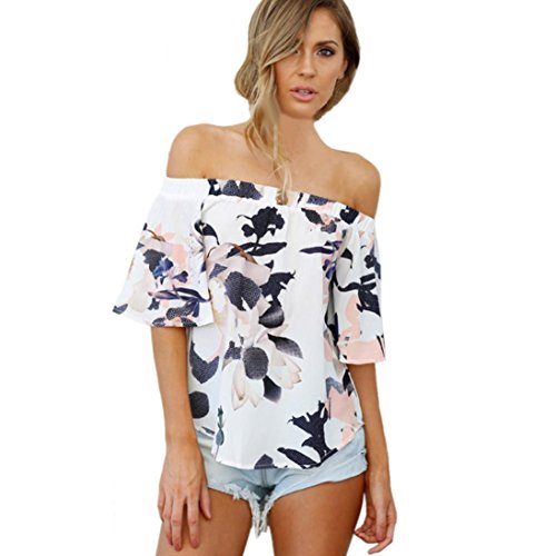 -. Feature : Gender: Women. Girls. / Material:Cotton Blend---Style:Fashion,Sexy / Sleeve Style:Flare Sleeve---Collar:Off Shoulder / Pattern Type:Floral Printed / Package include:1PC Blouse