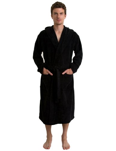 TowelSelections Men's Robe, Hooded Terry Velour Cotton Bathrobe Large/XLarge Black