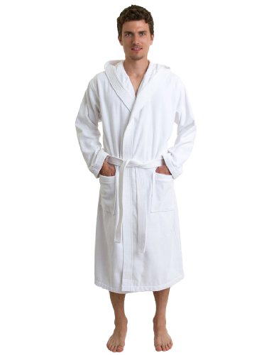 TowelSelections Men's Robe, Hooded Terry Velour Cotton Bathrobe Large/XLarge White
