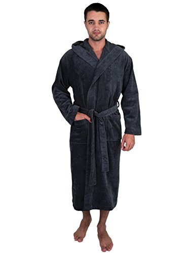 TowelSelections Men's Robe, Hooded Terry Velour Cotton Bathrobe Medium/Large Charcoal