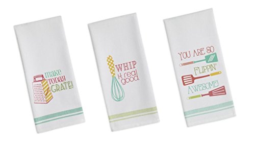 DII Flour Sack Printed Funny Quote Dishtowel Set of 3 Tea Towels
