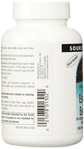 -. Binding : Health and Beauty -. Brand : Source Naturals -. Department : Health and Personal Care -. EAN : 0021078009696 -. Feature : As we age, hydrochloric acid and digestive enzyme secretion both decline; there is a natural need to replenish the body's digestive enzymes / Source Naturals -. IsAdultProduct : 0 -. Label : Source Naturals -. LegalDisclaimer : This information is intended for your general knowledge only and is not substitute for professional medical advice or treatment for specific medical conditions. This information is not intended to diagnose, treat, cure or prevent any disease. Always seek the advice of your qualified physician or other health care provider with any questions you may have regarding a medical condition. Keep out of reach of children. -. Manufacturer : Source Naturals -. Model : 021078013020 -. MPN : SN0969 -. NumberOfItems : 1 -. PackageQuantity : 1 -. PartNumber : SN0969 -. ProductGroup : Health and Beauty -. ProductTypeName : HEALTH_PERSONAL_CARE -. Publisher : Source Naturals -. Size : 120 caps -. Studio : Source Naturals -. Title : Source Naturals Daily Essential Enzymes -- 500 mg - 120 Vegetarian Capsules -. UPC : 021078009696