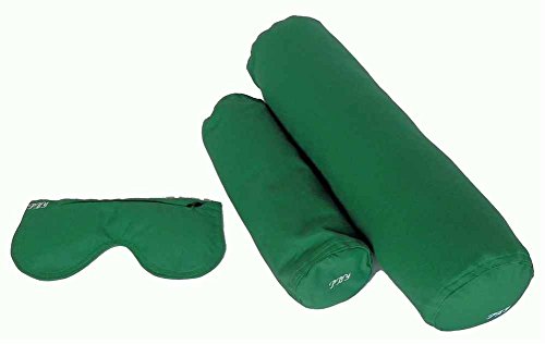 Studio : Peach Blossom Yoga Inc. Publisher : Peach Blossom Yoga Inc. Binding : Misc. Product Description Includes buckwheat filled neck bolster pillow, fiber filled back bolster pillow and buckwheat filled eye pillow. Buckwheat filled removes toxins. Easy clean-cold water and drip dry. Warranty: lifetime. Made from poly, cotton, buckwheat and poly fill. Made in USA. Back Bolster 5 in. L x 19 in. W x 5 in. H. Neck Bolster 3 in. L x 13 in. W x 3 in. H. Eye Pillow 5 in. L x 11 in. W x 5 in. H. Three piece kit perfect for meditation yoga or relaxation 0