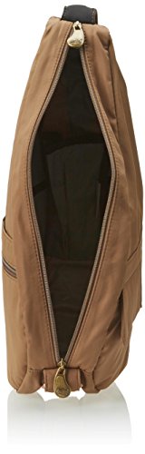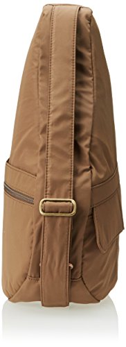 7103-TP Color: Taupe Features: -Material: Microfiber. -Non-slip adjustable shoulder strap. -Double zip main compartment. -Key hook. Product Type: -Sling. Product Type: -Shoulder Bag. Material: -Microfiber. Strap or Handle Style: -Shoulder Strap. Strap or Handle Style: -Adjustable Strap. Closures: -Top Zip. Color: -Black. Color: -Blue. Color: -Green. Color: -Pink. Size: -Large. Pattern: -Solid. Lightweight: -Yes. Key Clip: -Yes. External Pockets: -Yes. Generic Dimensions: -17'' H x 9'' W x 6'' D. Dimensions: Overall Height - Top to Bottom: -17 Inches. Overall Width - Side to Side: -9 Inches. Overall Depth - Front to Back: -6 Inches.Feature
