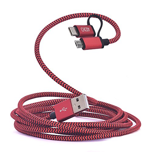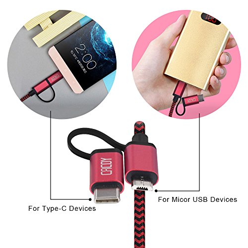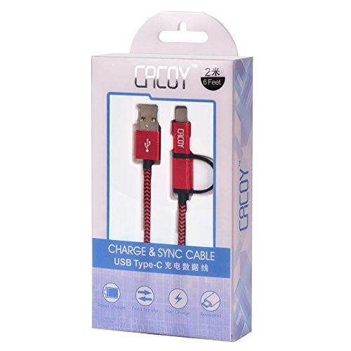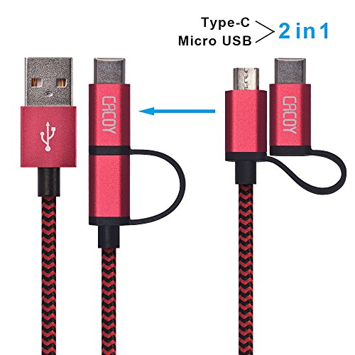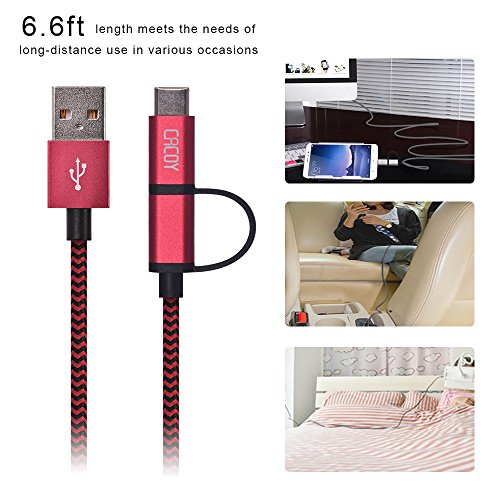 Cacoy 6.6ft USB C to Micro USB Adapter [2 in 1] Cable 56k Ohm Resistor with Aluminum Housing Braided for Nintendo Switch, Nexus 5X/6P, Huawei P9, OnePlus 2/3, HTC 10 and Android Phones-Red and Black