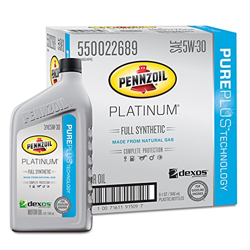 Pennzoil Platinum is an advanced full synthetic motor oil. Formulated with Superior Active Cleansing Agents, it continuously attacks potential and stubborn deposits to help keep vital engine parts clean. In fact, Pennzoil Platinum keeps your engine up to 40% cleaner than current industry standards. The ability to clean up your engine helps maximize engine protection and responsiveness.Feature