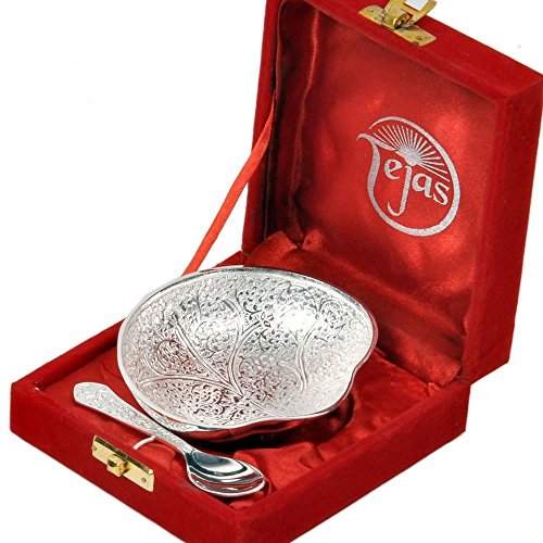 - Feature : Package Contents: 1 Fruit Bowl, 1 Spoon, 1 Box / Product Dimensions: Bowl LxBxH: 4x2x1 inches, Spoon L: 4 inches, Box LxBxH: 4.8x4.8x2 inches / Color: Silver / Material: Brass / Disclaimer: The item being handmade; the fine design, pattern and color tone of the product may vary slightly from that shown in the image. However, there would not be any compromise in quality.