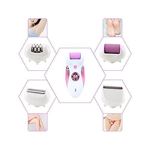 - All in one set. Epilator head, callus remover head, shaver head and Hair Clipper. 8-10 Hours of Charging
