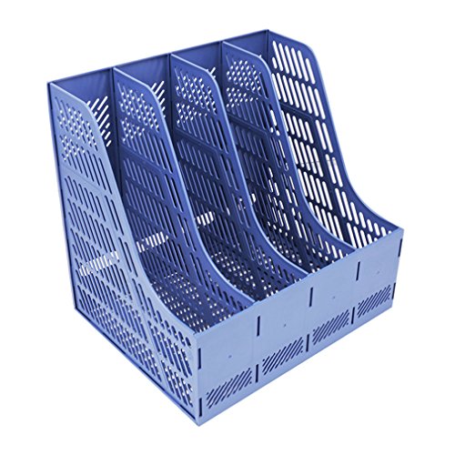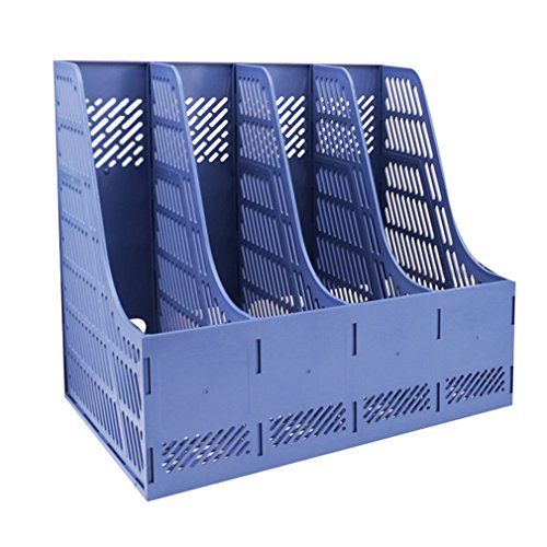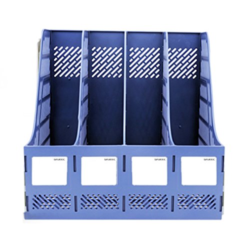 Sayeec Sturdy Desktop Quadruplicate Magazine Plastic Holders Frames File Dividers Document Cabinet Rack Display and Storage Organiser Box Blue