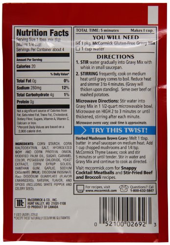 McCormick Gluten Free Brown Gravy Mix, 0.88 oz (Case of 12)